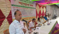 নড়াইলে মধুমতি নদীতে বাঁধ নির্মাণে গাফিলতি ও অনিয়মের প্রতিবাদ