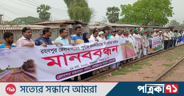 চাঁপাইনবাবগঞ্জের গোমস্তাপুর-নাচোল-ভোলাহাটসহ নওগাঁ জেলার পোরশা-নিয়ামতপির উপজেলার প্রাণকেন্দ্র রহনপুরকে পূর্ণাঙ্গ রেলবন্দরে পরিণত করার দাবিতে চলমান আন্দোলনের অংশ হিসেবে মঙ্গলবার সকাল ১১টায় রহনপুর রেলওয়ে স্টেশনে রেল লাইনের উপর মানববন্ধন অনুষ্ঠিত হয়েছে। আধা ঘণ্টাব্যাপী চলা এ মানববন্ধনে বিভিন্ন শ্রেণি-পেশার মানুষ, মুক্তিযোদ্ধা, শিক্ষা প্রতিষ্ঠানের শিক্ষক, ছাত্র -ছাত্রীবৃন্দ, বিভিন্ন সামাজিক-সাংস্কৃতিক সংগঠনের প্রতিনিধি, রাজনৈতিক দলের নেতাকর্মী ও ইলেট্রনিক্স ও প্রিন্ট মিডিয়ায় সাংবাদিকরা অংশগ্রহণ করেন।