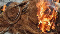 ৭ হাজার মিটার অবৈধ জাল জব্দ করে পোড়া হলো