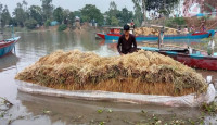 চলনবিলে বিপদগ্রস্ত কৃষকের ভরসা পলিথিনের নৌকা